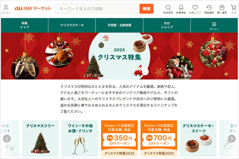au PAY マーケットでは、Pontaポイントやキャンペーンで、お得にクリスマスギフトを購入できます。