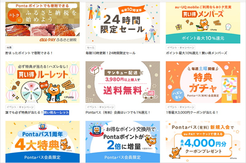 au PAY マーケットでは、お得なキャンペーンが随時、開催されています。