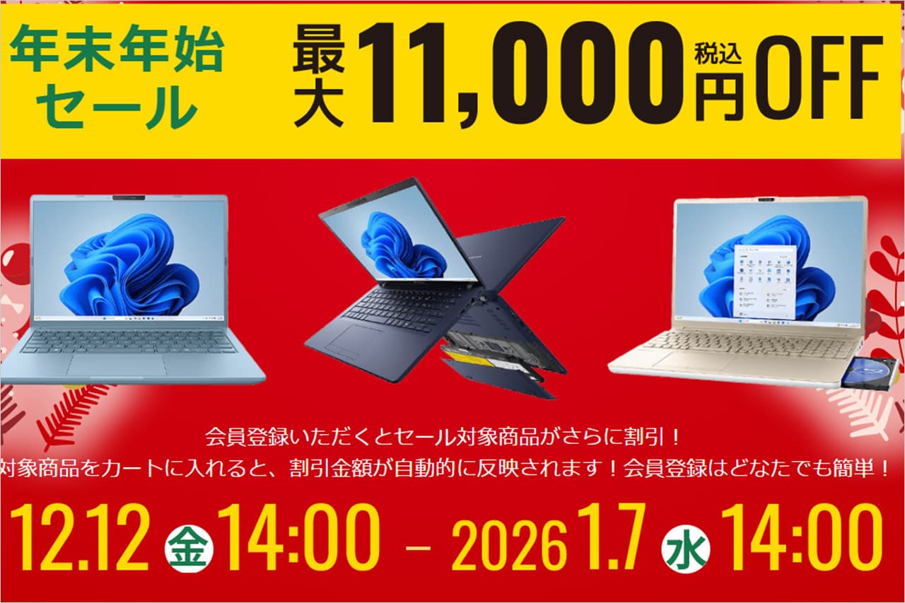 ASUSのノートパソコンやデスクトップパソコンお得に購入できます。 | セール詳細 |