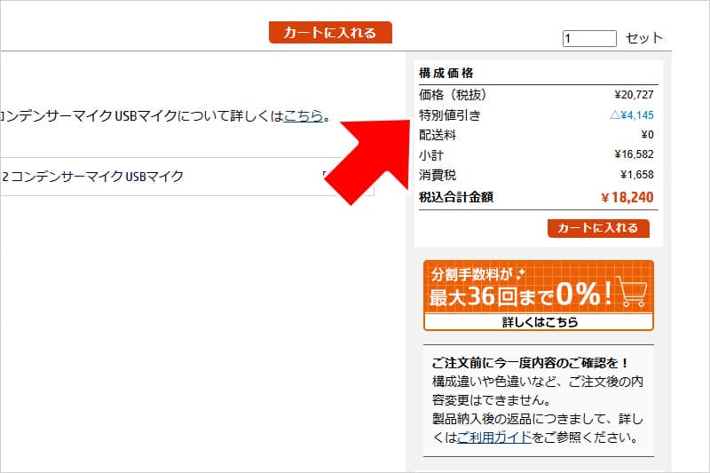 カート画面にて、特別値引きが適用されたのを確認して、購入してください。