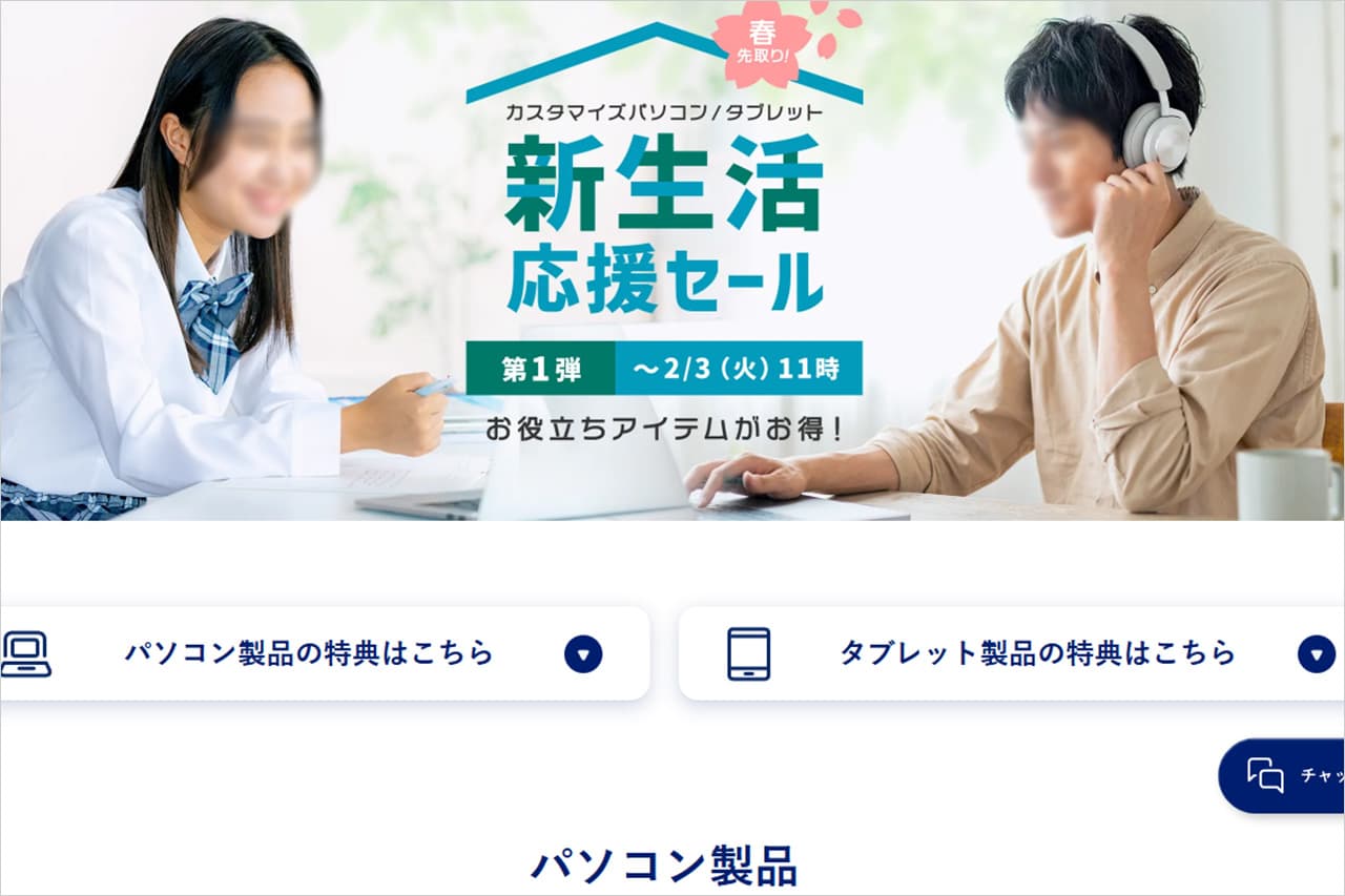 | Web限定お得な割引クーポン | マウスコンピューターの人気モデルが割引になる限定クーポンが配布されています。 | セール詳細 |
