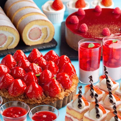 毎年、ホテルやレストランでは、いちごスイーツが食べ放題の「いちごフェア」が開催されます。ショートケーキやロールケーキ、プリン、チョコレートなど、いちごが盛りだくさんのスイーツビュッフェです。