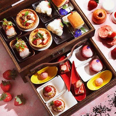 期間限定のストロベリー アフタヌーンティーセットは、スーツケースをイメージしたしたスイーツが楽しめます。